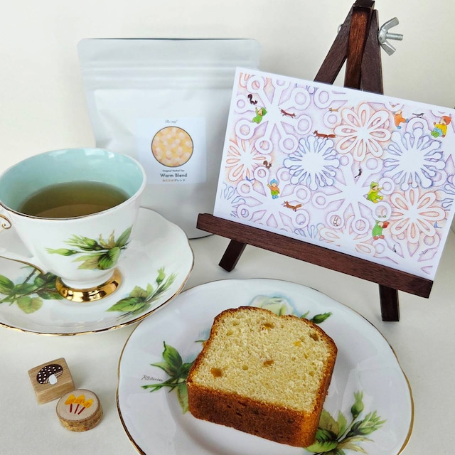 新年を迎え、富良野の気温は凍りついてきました。 景色もそれなりに凍りつき、キラキラ輝いています... 『六花』ギフトは2月中旬頃までの予定となっております。 ご注文から商品到着まで10日前後かかる場合がございます。 尚、日にち指定等のお届けはお受けしておりません。 余裕を持ってご注文ください。 *箱サイズ* 185×120×70 (mm) ******************* 【Tearoom Berry&Chloe's】 *ゆずのケーキ* 高知県産ゆずでピールを作り、生地に入れ焼いたお菓子です。 ゆずの香りと味のお菓子をお楽しみ下さい。 ******************* 【Re:leaf】 ハーブティー(2人分入り)×5袋 をお届けします。 *あたためブレンド* 【原材料】 (オーガニック) ・番茶 ・ジンジャー ・ユズピール ・オレンジピール (上富良野産) ・クマササ ・レモングラス ・マーシュマロウ ・赤シソ ・カモミールローマン ・カレンデュラ ・オレンジタイム ・ヒソップ ・ラベンダー 上富良野産は自家栽培・無農薬・無化学肥料です 【内容量】 ・3g × 5袋 【保存方法】 高温多湿を避け冷暗所で保存してください。 【特長】 身体を温めてくれる番茶。 クマササ、ジンジャーなどをメインにブレンド。 番茶をメインにブレンドしているため飲みやすいのもポイント。 【美味しい飲み方】 一袋に2人分入っています。 熱湯を300cc注ぎ、5〜10分程蒸らしてお召し上がりください。 ******************* 【Fujita Yukiko】 *小さなきのこのマグネット* テングタケとアカチシオタケがモチーフです。 2個入り 素材:木・アクリル絵の具 丸い切り株は白樺を使用していますので、薄皮などがむけることがございます。 サイズ:四角…約2cm×2cm 厚さ1cm 丸…直径約2cm 厚さ約8mm〜1cm *ポストカード・包装紙* 「花びらのようにひらひらと舞い降りる雪の結晶に乗って、冬の夜空の旅を楽しんでいるこどもたちと動物たち」 ギフトBOX包装の色紙の色合いは見本と多少異なる場合がございます。 他、富良野ひたむき物産展内のイラスト全般を手掛けています。