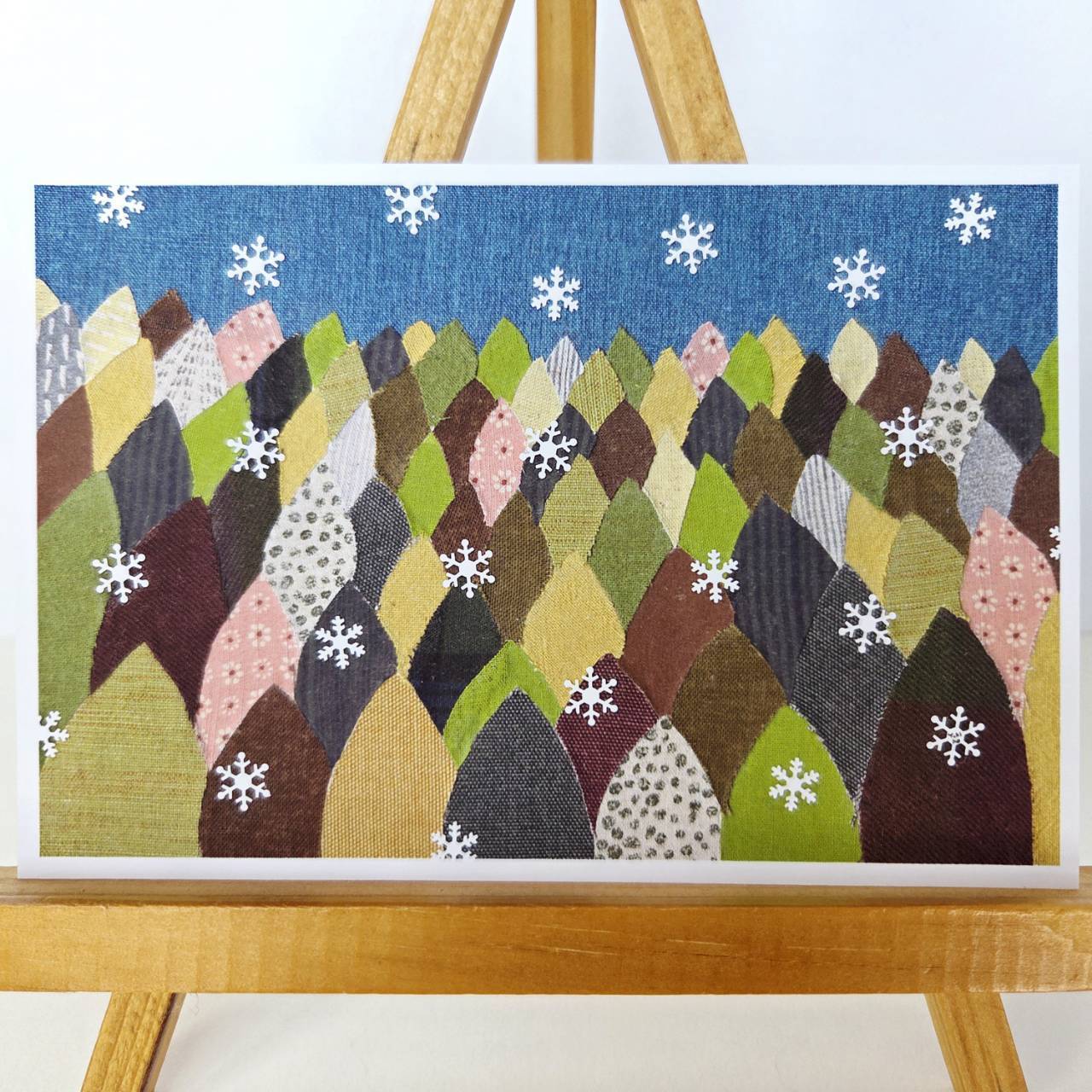 布の貼り絵で冬の富良野の森を作りました。